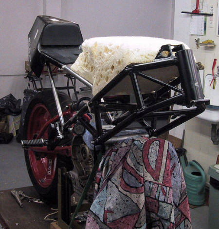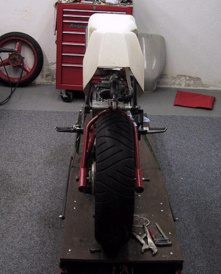 De tank en zit zijn breder dan het frame daarom